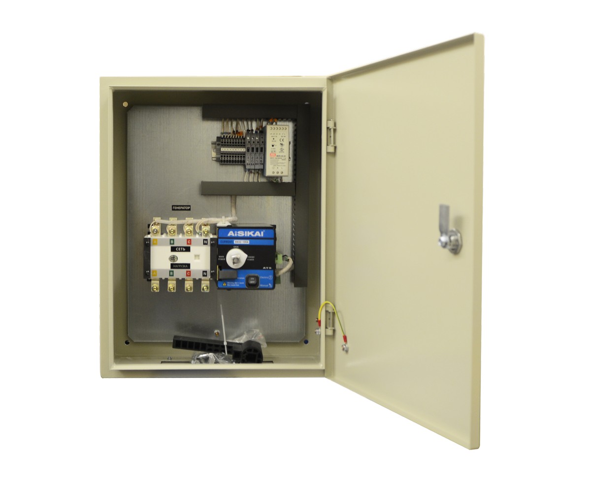 Автоматический ввод резерва (АВР) применяют для генераторных установок, которые используются в качестве резервного источника электрической энергии. Основной функцией АВР является коммутация источников электроэнергии с потребителями энергии. АВР имеет минимум два ввода: 1 ввод (основной) – ввод от основного источника электроэнергии, 2 ввод (резервный) – ввод от резервного источника электроэнергии. Вводы взаимно блокируют друг друга – один из них замкнут, другой разомкнут. В нормальном положении основной ввод замкнут и от постоянного источника (как правило это линии электропередачи) происходит снабжение потребителей. В случае попадания электропитания (или выхода качества электроэнергии за рамки установленных значений) система автоматики производит запуск генераторной установки. После выхода установки на рабочий режим, АВР производит коммутацию потребителя электроэнергии на резервный источник – генераторную установку. При появлении электроэнергии надлежащего качества на основном вводе, АВР (после установленной временной задержки) производит обратную коммутацию потребителя электроэнергии на основной источник энергии. Система автоматики производит выключение генераторной установки. Все элементы АВР размещается в металлическом корпусе. АВР является отдельным, самостоятельным устройством, не являющимся составной частью генераторной установки. Если генераторная установка изначально не имела АВР, дооборудование установки можно произвести в любое время.