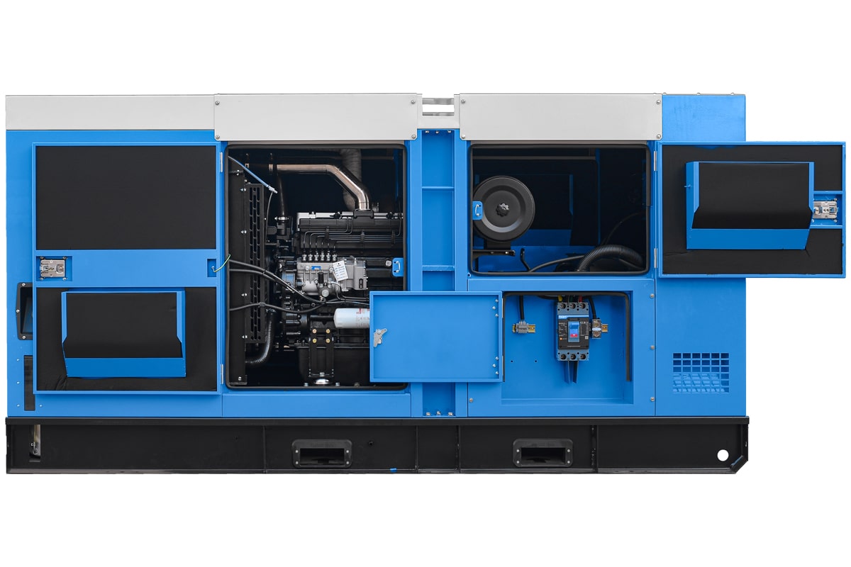 Дизель генераторную установку в шумопоглощающем кожухе можно эксплуатировать как в помещении, так и на улице при температуре окружающей среды от -25°С до +40°С. Кожух обеспечивает необходимую теплоизоляцию и снижает уровень шума на 10-12 дБ.