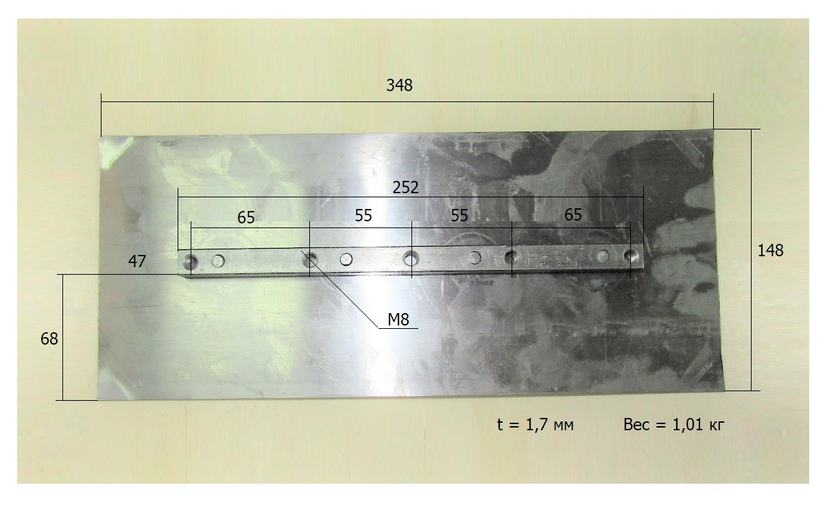 Лопасти для заглаживающей машины ТСС DMD, DMR 1000, 900 Лопасти заглаживающей машины.сталь. Размеры :340х150 мм. центральный квадрат крепления 257х15х15. отверстия М8-5 шт. толщина металла 1,3 вес 0,86 кг. Межцентровое расстояние между отверстиями-65,55,55,65 мм.